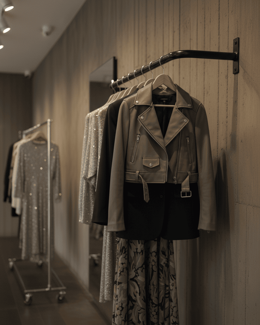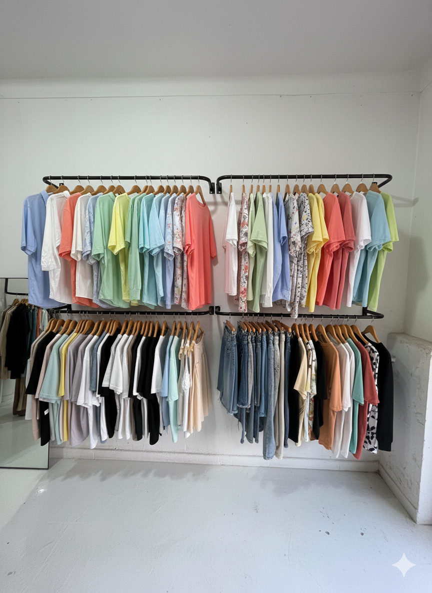 Su diseño industrial y su estructura de hierro reforzado garantizan durabilidad y resistencia, permitiendo exhibir tus prendas de manera ordenada y atractiva.
